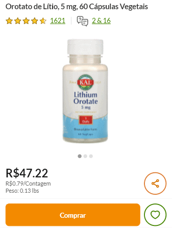 Outros produtos contêm 10 a 20 mg de lítio elementar, o que pode ser adequado para quem não vê os efeitos benéficos em doses mais baixas.