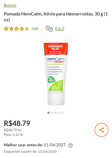Para realizar o tratamento completo das suas hemorroidas, indicamos o uso do Comprimidos HemCalm ou dos Supositórios HemCalm . Você encontra todos esses produtos no iHerb Brasil. Basta clicar no botão abaixo.